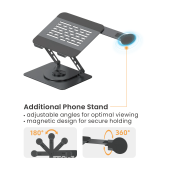 360° Rotating Foldable Stepless Adjustable Laptop Riser with Magnetic Phone Stand