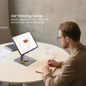 This foldable phone & tablet stand combines portability with reliable support, making it easy to adapt to different work and leisure scenarios. With 360° rotation and adjustable angles, it delivers optimal viewing for video calls, presentations, or entertainment. Its compact foldable design makes it easy to carry and store, while the sturdy open structure provides stability and ventilation.